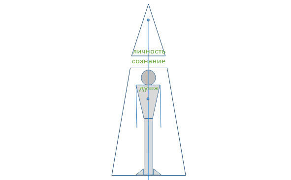Рис.1 Человек обычный. Личность и душа разъединены и соединяются лишь эпизодически (например угрызения совести, интуитивные озарения)