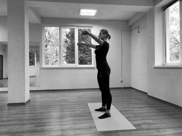 Дыхание: исходное положение вдох, при выполнении движения 1 плавный выдох.