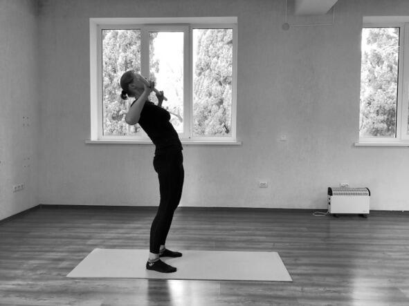 Дыхание: исходное положение вдох, при выполнении движения 1 плавный выход.