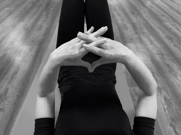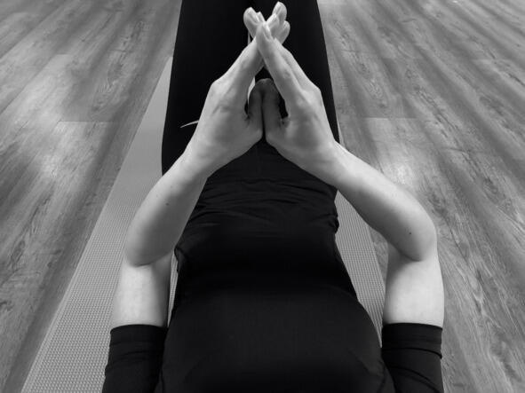 Исходное положение: лёжа на спине, руки приподняты над животом, пальцы обеих рук сложены между собой, соприкасаясь в области средних суставов (проксимальных межфаланговых суставов); в данной композиции участвуют все пальцы, кроме больших, отведённых в стороны, перпендикулярно ладоням.