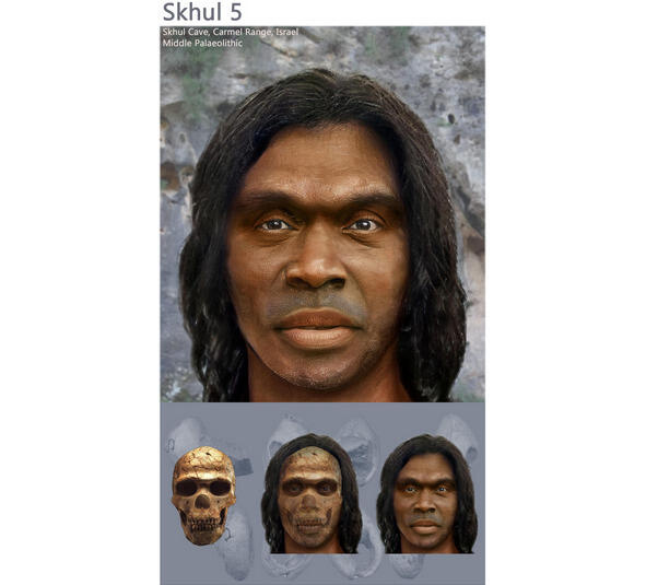 Мужчина из погребения Схул-V. Графическая реконструкция Т. С. Балуевой [125] и изображение в цвете, выполненное по реконструкции художником Philip Edwin [227]