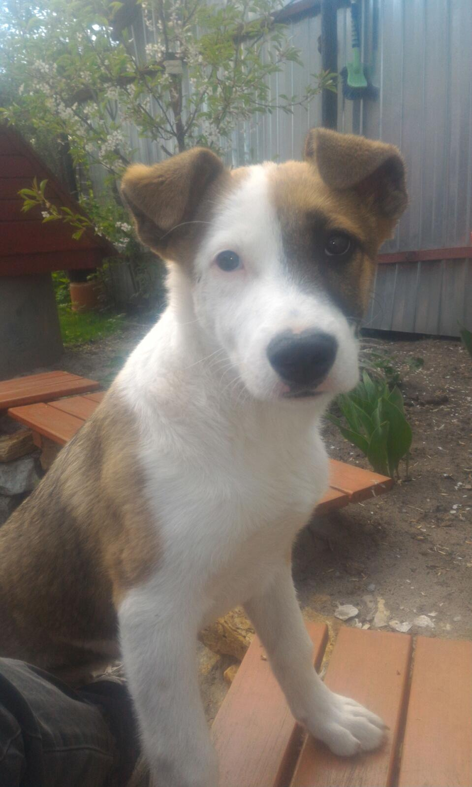 Отложил я интернет в сторону и стал смотреть на щенка: морда поделена на две части, одна белая, другая коричневая; уши стоячие, но сами кончики смешно висят; выражение мордахи ещё детское и наивное.