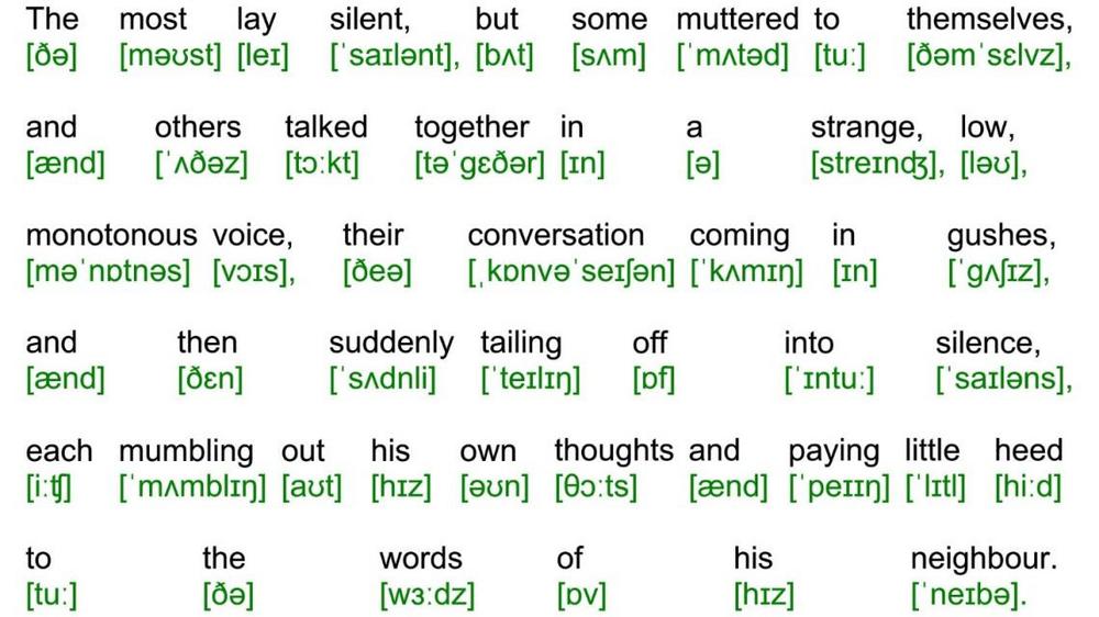 The most lay silent, but some muttered to themselves, and others talked together in a strange, low, monotonous voice, their conversation coming in gushes, and then suddenly tailing off into silence, each mumbling out his own thoughts and paying little heed to the words of his neighbour.