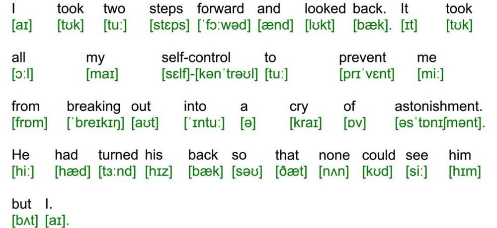 I took two steps forward and looked back. It took all my self-control to prevent me from breaking out into a cry of astonishment. He had turned his back so that none could see him but I.