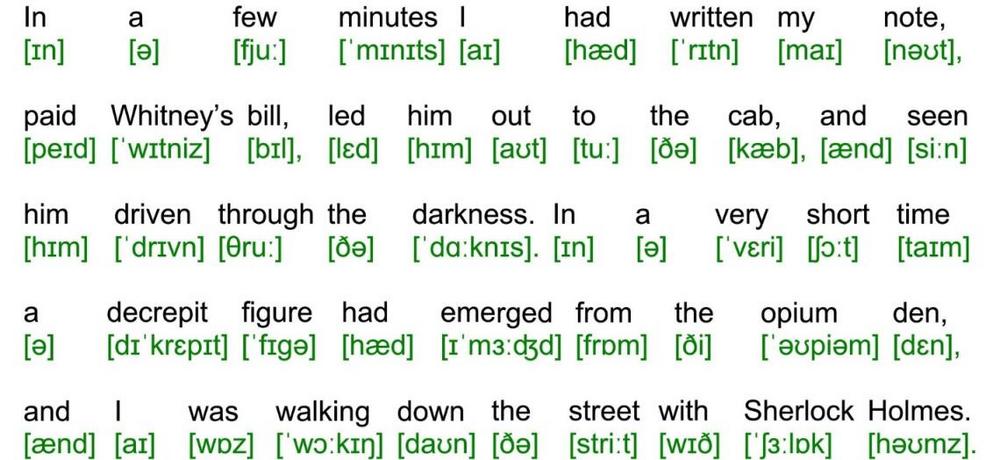 In a few minutes I had written my note, paid Whitneys bill, led him out to the cab, and seen him driven through the darkness. In a very short time a decrepit figure had emerged from the opium den, and I was walking down the street with Sherlock Holmes.