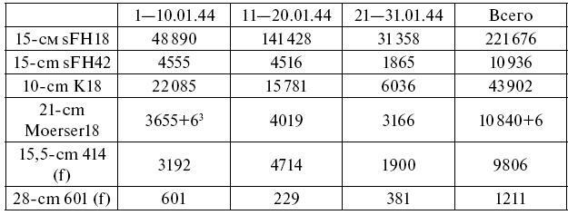РАСХОД БОЕПРИПАСОВ ТЯЖЕЛОЙ АРТИЛЛЕРИИ НЕМЕЦКОЙ 3-Й ТАНКОВОЙ АРМИИ В ЯНВАРЕ 1944 Г[42].