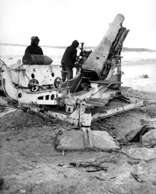 Усугублялась ситуация условиями позиционного фронта, позволявшими немцам использовать тяжелые и громоздкие образцы, малопригодные для маневренной войны (характерной для южного сектора советско-германского фронта). Таковыми в 3-й танковой армии являлись трофейные французские 280-мм мортиры Шнейдера (Mortier de 280 mm Mie 14/16 Schneider), проходившие в германской армии как 28 cm Morser 601 (f). См. последний пункт вышеприведенной таблицы. Это 16-тонное орудие стреляло 205-кг снарядами на дальность 10950 м со специально подготовленной позиции. Для транспортировки мортира разбиралась на четыре части. В идеальных условиях сборка и подготовка мортиры к стрельбе занимали от 6 до 8 часов, а в тяжелом грунте могли затянуться до 18 часов. При быстрой смене начертания линии фронта был велик риск утраты орудия. Однако в позиционных боях с передвижением на считаные километры эта опасность признавалась терпимой. К тому же немцы не слишком жалели трофейные орудия. Причем опасность такая была вполне реальной: по документам оберквартирмейстера 3-й танковой армии числятся безвозвратно потерянными, по крайней мере, четыре 28-см мортиры. Две в декабре 1943 г. (в десятидневку 2131 декабря) и две в январе 1944 г. (в десятидневку 1120 января), т. е. как раз в периоды крупных советских наступлений.