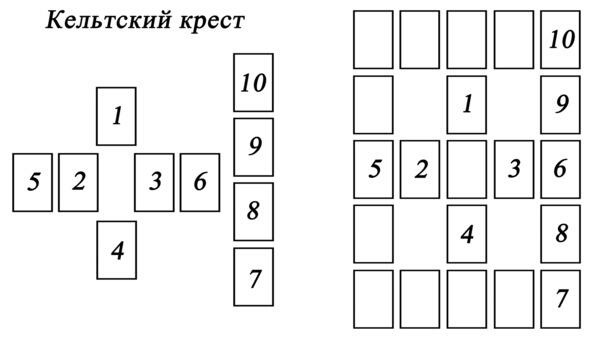 В целом, купленный по случаю буклет был классическим образчиком «лоточной» литературы середины девяностых годов прошлого века. Т.е. в нем не было ничего примечательного. Поэтому работать с этой колодой было не очень интересно. Но как-то вечером, во время изучения схемы «Кельтский крест» картам было найдено другое применение. Посетившая идея была очень простой. Что если не гадать, а разложить карты по номерам как пасьянс, используя подобную же схему (рис. 1), но в виде квадрата?