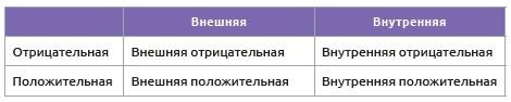 2.3.1. Внешняя и внутренняяМотивация бывает внешняя (иногда можно встретить термин «экстринсивная») и внутренняя («интринсивная»). Разница в том, лежат ли мотивы внутри человеческой личности или за ее пределами. До сих пор неясно, какие из них считать более важными, однако отрицать сам факт наличия внутренней мотивации бессмысленно, поскольку наши потребности уж точно находятся внутри нас. Также очевидно, что часть мотивов имеет внешнее происхождение: человек живет в социуме, а значит, разделяет принятую в нем систему ценностей.