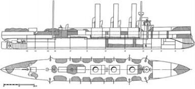 Схема размещения запаса угля (показано штриховкой) сверх нормального (1902 т), принятого в порту Габон 15 ноября 1904 года