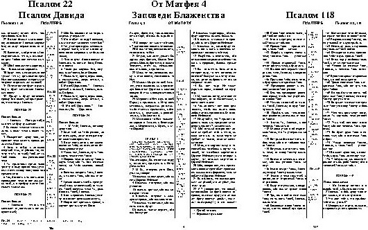 Напечатанные на этой странице главы исполнены шрифтом «диамант» и микроскопическим шрифтом. С первой попытки может показаться сложным привыкнуть к мелкому шрифту, но если смотреть на него, не пытаясь при этом его прочитать, то шрифт начнет проясняться.