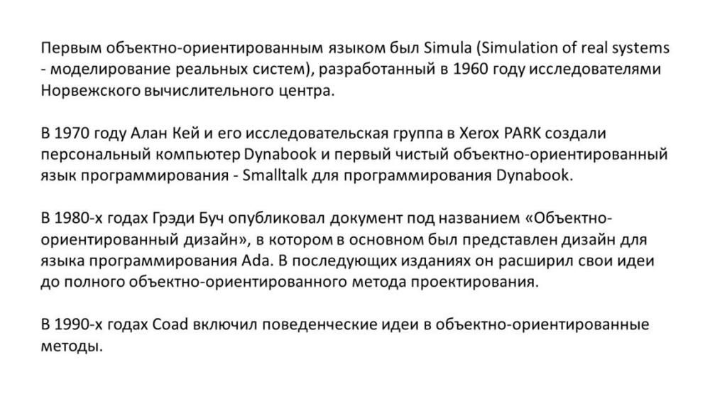 Объектно-ориентированный подход зародился в программировании в середине прошлого века.