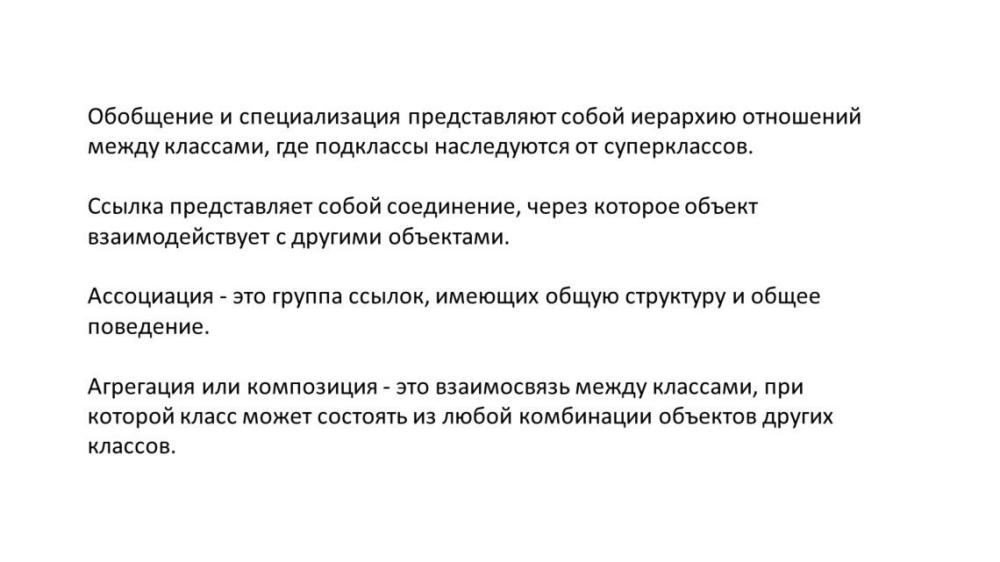 В процессе обобщения общие характеристики классов объединяются для формирования класса на более высоком уровне иерархии, т. е. подклассы объединяются для формирования обобщенного суперкласса.