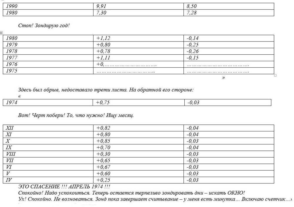 «Академики» освободили свое рабочее место от книг и тетрадей, которыми в спешке прикрыли его, и молча продолжили свое дело. Витёк дописал текст, собрал уже почти отвалившиеся от стекла объекты исследования и аккуратно завернул их в бумагу. Через пять минут на стекле красовались оставшиеся обрывки, но, вот беда, оба листка были не полными: недоставало почти половины тридцать восьмого и трети сорокового; кроме того, с обратной стороны тридцать восьмого листа просматривался какой-то рисунок типа схемы или плана. Понять его не представлялось возможным. Сороковой же пестрел множеством ни о чем не говорящих, на первый взгляд, цифр. И все же в тексте было несколько деталей, еще больше озадачивших «академиков».