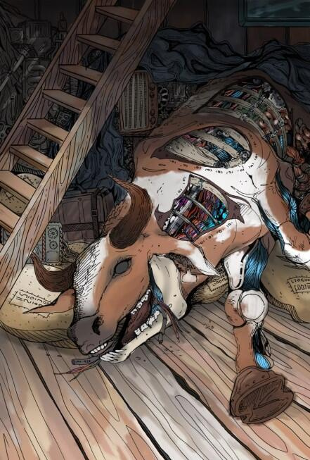 Рядом валялась передняя часть механической коровы, глядящая пустыми глазницами, и десятки разных неработающих приспособлений, которые дед называл техникой со странной приставкой «бытовая». По его словам, до войны люди активно использовали все это в хозяйстве, но Роби даже представить не мог, какие функции могут выполнять эти странные предметы. Здесь, же, в левой части мастерской, валялась перепачканная в земле «машинка для сада», которую дед вытащил на свет и, поставив у рабочих столов, принялся за ремонт.