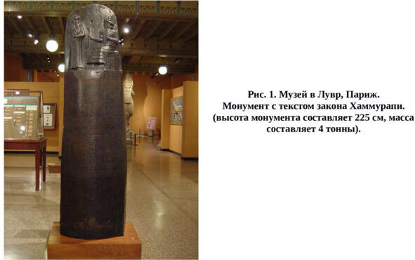 Известно, что на конусообразном монументе, сделанном из черного диорита, высечен текст с законами царя Хаммурапи (рис. 1). Стела создана по мнению ученых, не ранее чем на 3540 году правления Хаммурапи (1755 и 1752 гг. до н.э.), незадолго до смерти вавилонского царя1. Согласно этим законам Хаммурапи вавилонские врачи уже во II тыс. до н.э. проводили сложные хирургические операции, в том числе глазные, когда они умудрялись с помощью скальпелей снимать катаракты. В случае неудачи операции лекарь подвергался жестокому наказанию. Например, в 218 статье настоящего закона читаем: «Если лекарь сделал человеку тяжелую операцию бронзовым ножом и убил того человека., ему должны отрубить кисть руки»14. Законом определялась и плата за службу. В 215 статье закона пишется, что при спасении человека лекарь имеет право получить от больного 10 сиклей серебра15. Согласно этому закону в Вавилонии имелись и опытные костоправы. Их труд регламентировался в статье 221. В законе сказано: «Если лекарь срастил сломанную кость у человека или же вылечил больной сустав, то больной должен заплатить лекарю 5 сиклей серебра».
