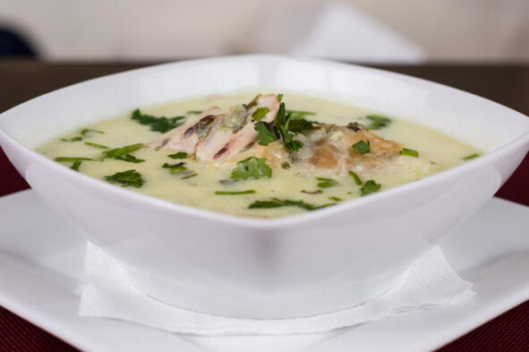 Рис предварительно отварить и остудить. Яйца также отварить, остудить и нарезать. С рыбы слить жидкость, кусочки рыбы измельчить. Все ингредиенты смешать и заправить соусом из йогурта с добавлением соли и горчицы (по вкусу) или просто майонезом.