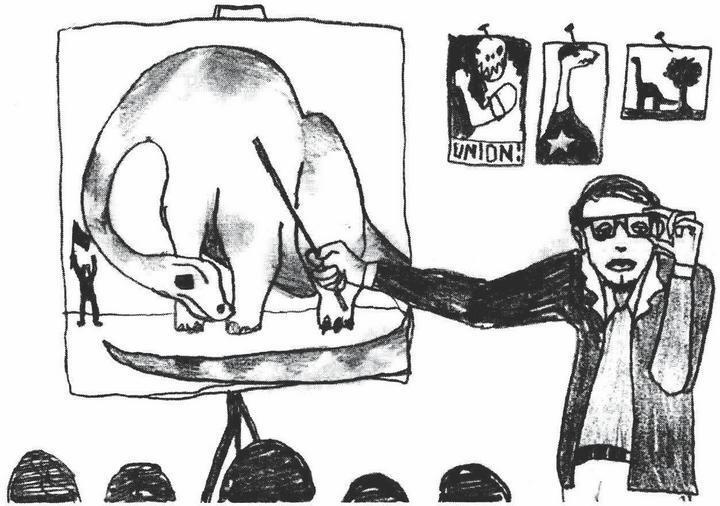 Вместо манифестаМы живем в век динозавров. Повсюду вокруг нас огромные социальные, экономические и политические чудища ломятся сквозь разрушенную среду обитания, отбрасывая угрожающие жизни тени на всю планету. В наших сообществах идет титаническая борьба, по мере того как Капиталист-Рекс и Режим-азаурус борются, чтобы набить свои животы как можно большим количеством ресурсов и мощью, в то же время удерживая на расстоянии конкурирующие виды, такие как вновь рассвирепевшие Птеррор-дактили. Битва между этими гигантами ужасна, она продолжает бушевать, но она не может затянуться надолго. Эволюция против этих обреченных на неудачу тиранов. Их солнце уже клонится к горизонту, а яркие глаза других существ поблескивают в темноте, требуя чего-то иного.