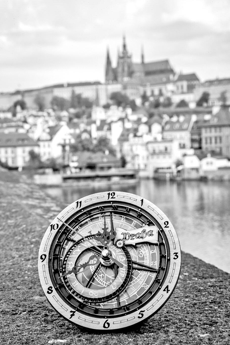 Башню собора Святого Вита строили долго-предолго, поэтому до пояса она получилась готической, а после 55-го метра барочной. Выше всех колоколов, под шпилем, на верхушке которого флюгером вертится позолоченный двухвостый лев с крестом в лапах, расположен часовой механизм. Чтобы добраться к нему от часовни Гроба Господня (туда в 1436 году перезахоронили останки епископа Збынека Зайица из Газмбурка, прозванного за пугающую для священника необразованность Алфавитом), приходится пересчитать почти три сотни ступеней. Эти часы, по остроумному замечанию одного современного пражского летописца, хай-тек эпохи императора Рудольфа II артефакт начала XVII века: стрелки на верхних циферблатах движутся с обычной скоростью, а на нижних оборачиваются непривычно проворно, за 15 минут. Не думаю, впрочем, что речь идет о самом необычном пражском хай-теке: например, стрелки на часах Еврейской ратуши в районе Йозефов вращаются в обратную от привычной сторону, а циферблат расчерчен буквами (они же цифры) на иврите. Поскольку на иврите пишут слева направо, то и стрелки движутся слева направо, иначе говоря, по-еврейски.