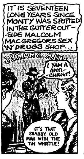 Сидящие в лондонском кафе две нарядно одетые дамы с некоторой брезгливостью рассматривают мокнущего под дождём человека. «Это же тот старый оборванец с вистлом», говорит одна из них. Человек в надвинутой на глаза поношенной шляпе пытается насвистывать: I yam a antichrist! «Прошло семнадцать лет с тех пор, как Монти был замечен в сточной канаве около магазина Малкольма МакГрегора Sex n Drugs» так подписана эта картинка из комикса Рэя Лоури о приключениях вышедшего из моды, но претендующего на роль спасителя поп-музыки Монти Смита.