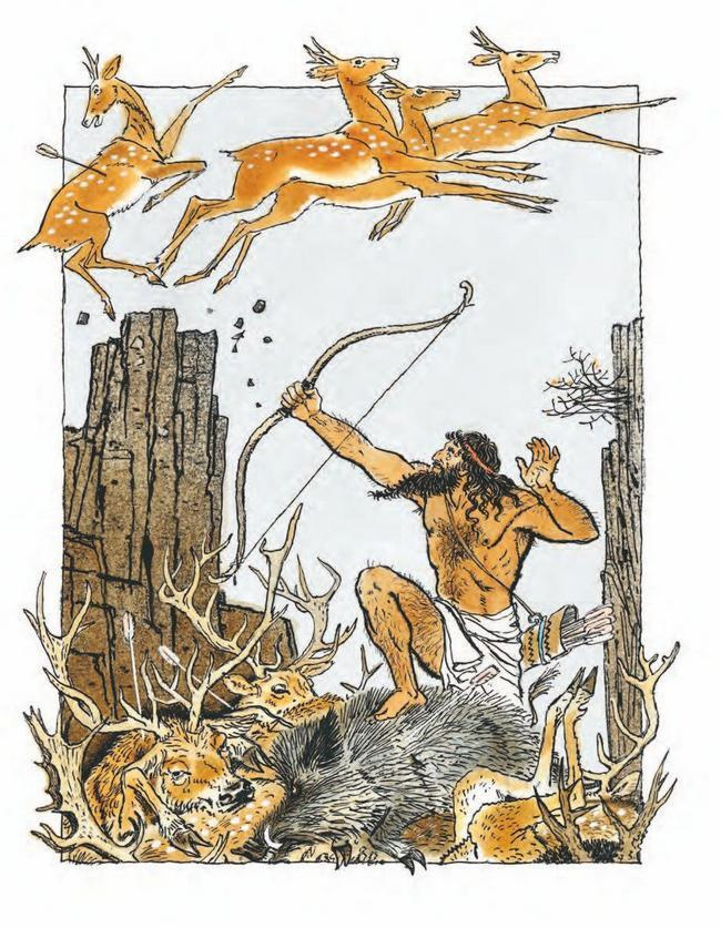Шли дни, уже всё вокруг было усыпано жертвами его стрел, а он никак не мог остановиться, то углубляясь в лес, то пересекая поля, то взбираясь на холмы.