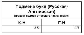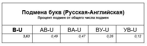 В целом по букве «U» подмена использована в 4,97 процентах подмен. В некоторых, так, с первого взгляда, след латыни и не приметишь! А может в некоторых его и нет