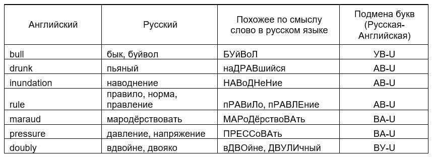«Если мы не видим смысла в английском слове сразу, но в нём есть буква «U», то следует попробовать прочитать её как русскую «В».