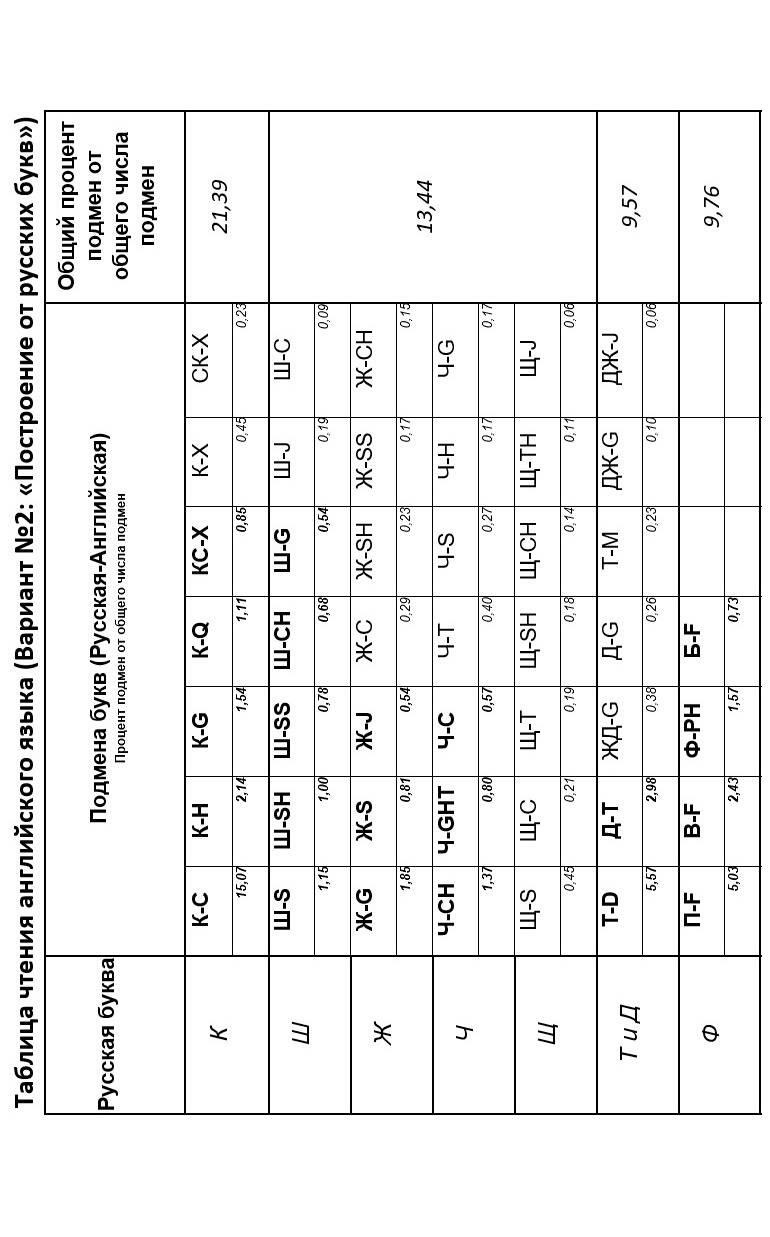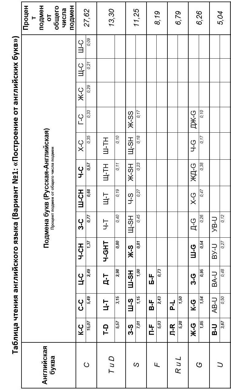 Короткий анализ таблицы чтения английского языка