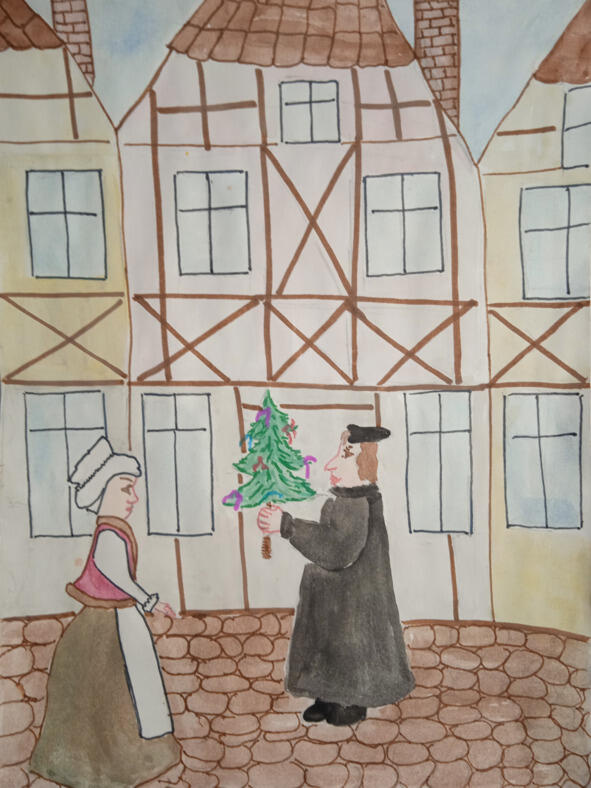 Как здорово вы придумали, херр Лютер. Наверное, остальные жители нашего Виттенберга с удовольствием дополнили бы свой рождественский стол такой ёлочкой. Спасибо вам за идею, побегу, попрошу своего мужа тоже сходить в лес за маленькой ёлочкой, сказала женщина и быстрым шагом пошла к стоящему невдалеке двухэтажному розовому домику.
