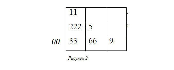 Начертите матрицу (Рисунок 2) и внесите все цифры подряд в те колонки, которым они соответствуют (смотрите Рисунок 1) Если есть ноль между цифрами, его надо вынести за пределы матрицы. Первый ноль не считается и никуда не вносится. Если нет каких-то цифр, колонку оставляйте пустой.
