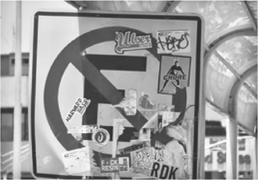 Но пятью минутами позже вы с легкостью можете получить от этой же системы совершенно абсурдный ответ, как вышло, например, с этим дорожным знаком, на который кто-то налепил наклейки: компьютер назвал эту сцену «холодильником с большим количеством еды и напитков» (рис. 1.2).