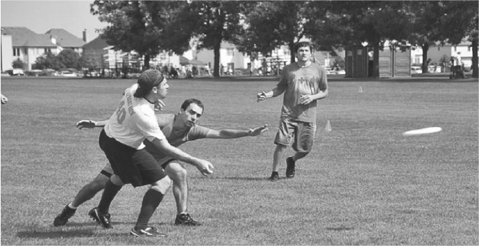 Даже в тех задачах, где современный искусственный интеллект должен теоретически предстать в самом лучшем свете, регулярно случаются серьезные сбои, иногда выглядящие очень забавно. Типичный пример: компьютеры в принципе уже неплохо научились распознавать, что находится (или происходит) на том или ином изображении. Иногда эти алгоритмы работают прекрасно, но зачастую выдают совершенно невероятные ошибки. Если вы показываете изображение автоматизированной системе, генерирующей подписи к фотографиям повседневных сцен, вы нередко получаете ответ, удивительно похожий на то, что написал бы и человек; например, для сцены ниже, где группа людей играет во фрисби, широко разрекламированная система генерации субтитров от Google дает совершенно правильное название (рис. 1.1).