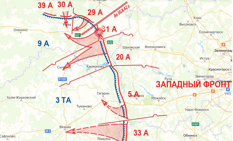 Противостояли этим двум армиям две дивизии Вермахта 36 моторизованная и 161 пехотная. Войска Красной Армии, сосредоточенные на этом участке фронта, многократно превосходили противостоящие силы Вермахта во всех отношениях. Но, в отличие от 20-ой и 31-ой армий, сформированных вторично в октябре-ноябре 1941 г., после Вяземской катастрофы, эти две немецкие дивизии обладали большим боевым опытом.