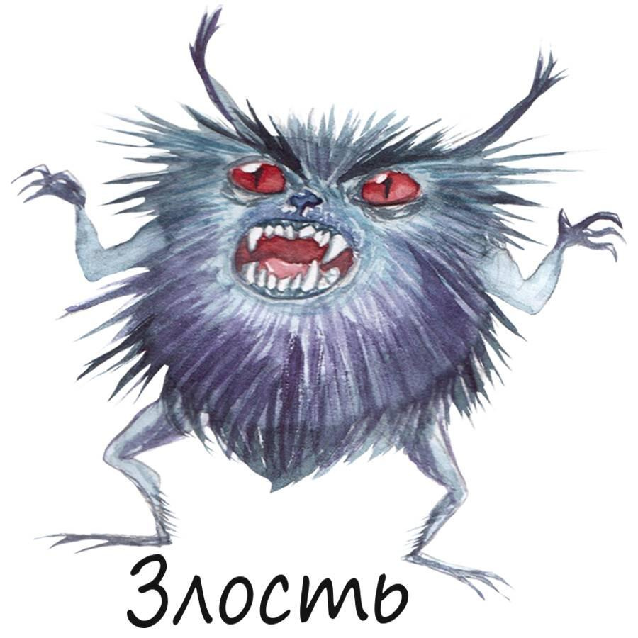 На другой страничке ребята увидели черную, оскалившуюся Злость с красными глазами и торчащей дыбом шерстью.