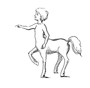 Когда внизу жаркое лето или морозная зима, наверху царила вечная весна. По горе текли ручьи, а в них кто только не плескался и мелкие рыбки, и водные богини наяды, и чудища разные, но не страшные ведь на Олимпе все друг другу родственники. Вот и бог Эрот выходил с ними купаться. А в ручье можно жемчуга насобирать целое ведро, если столько понадобится. А надоест в воде барахтаться, отправляйся в лесу бродить. Однажды Эрот пошел гулять и встретил самого настоящего кентаврика. Мальчишку с туловищем жеребенка.