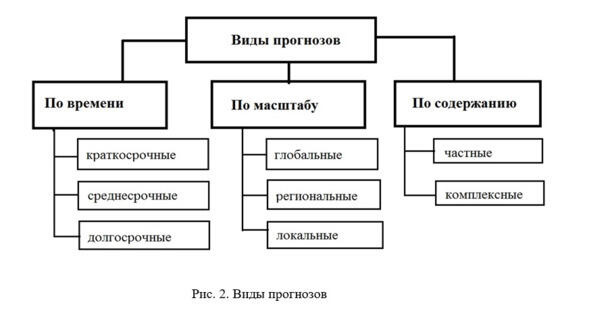 Основываясь на объектах прогнозирования, прогнозы различают по времени, по масштабу и по содержанию (рис. 2).