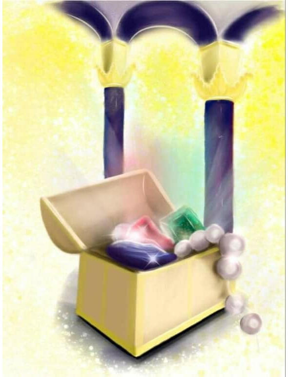 Упал сундук с ярким каменьем.