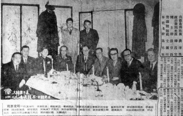 Газетная статья о собрании в кисэн-хаусе. На фото: Чой Хон Хи третий слева, а стоит за ним Сон Дук Сун. Фото предоставлено Генералом Чоем и Чоном Джон Суном.