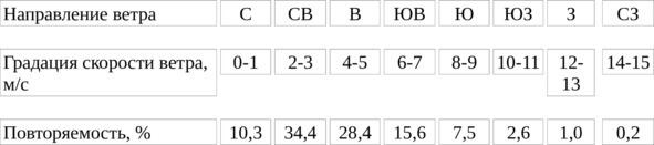 Повторяемость скорости ветра по градациям представлена в таблице 1.5.