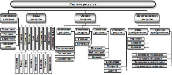 источник ресурсов; вид ресурсов; оценка ресурсов; преобразование ресурсов.