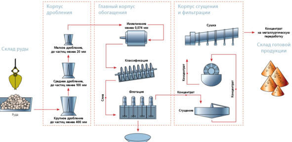 структура системы: элементы (отдельные элементы переработки руды (мельница, лента и так далее) и связи (между элементами).