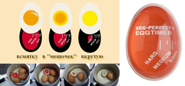 Яйцо красят термочувствительной краской. По мере готовности будет появляться надпись «всмятку», «в мешочек», «крутое».