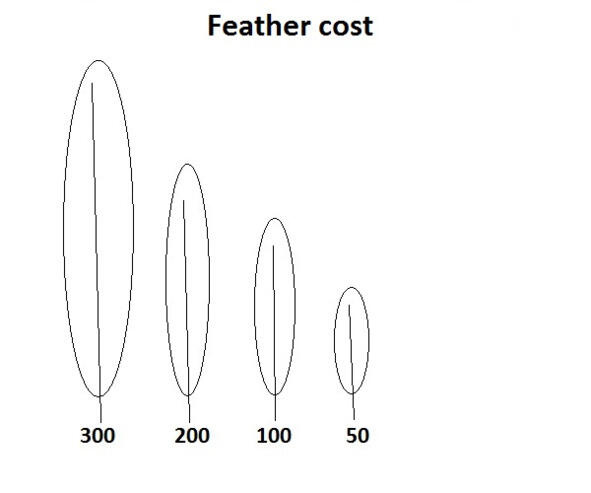 If the feather is large, count 300 Komariev, average 200 K, slightly less than average 100 K, small 50 K.