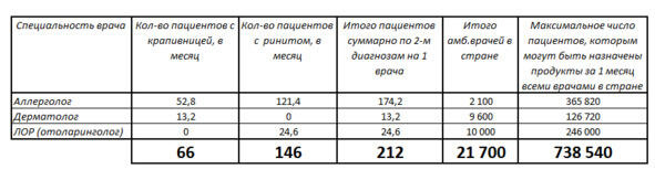 Подставляем данные в нашу табличку для того, чтобы понять, сколько специалисты могут выписать нам препарата с учётом загруженности и частоты встречаемости диагноза во всей стране за 1 месяц: