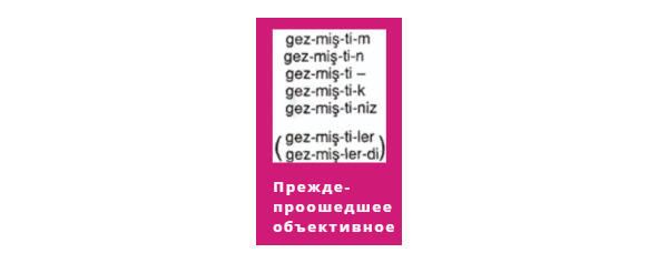 «Bu akşam (тем вечером) içmek..[ичеджектим] (я не собирался пить/ будущее-прошедшее время)» demek.. (сказал он/ прошедшее категорическое время).