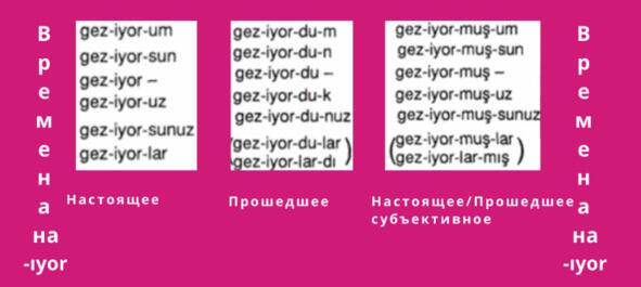 Настоящее продолженное время используется в турецком языке в нескольких значениях: