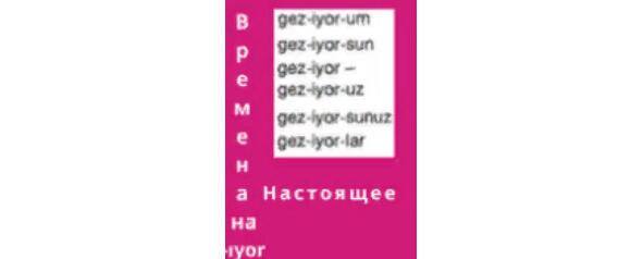 Ofis.. (в своем офисе/ 3 л. ед. ч., местный падеж) oturmak.. (он сидит и/ конверб -ıp -ip -up -üp) dergi.. (журнал/ 3 л. ед. ч., винительный падеж) okumak.. (читает/ настоящее продолженное вр.), yalnız başına (в одиночестве).