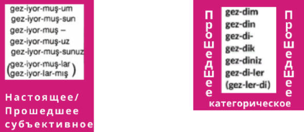 Yol.. (личный аффикс + родительный падеж) üzerinde..[юзириндейды] (буфер + аффикс прошедшего категорического времени) (я был в пути), sen.. (винительный падеж) karşılamak.. (инфинитив в направительном падеже) gelmek.. (я шёл встретить тебя/ определённый имперфект).
