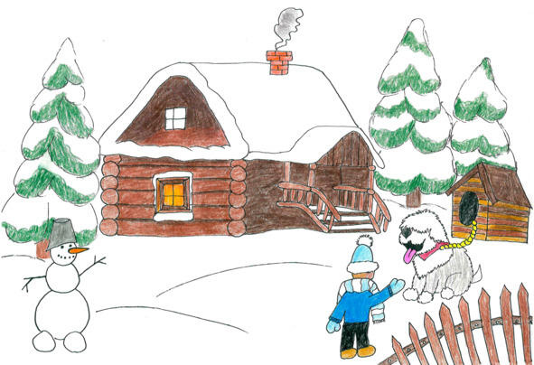 На минуту я перевёл взгляд на окно. Через шторку просачивались яркие солнечные лучи, и было видно, как медленно порхали снежинки. Чудная пора! Обожаю, когда идет снег! Я, недолго думая, отключил приставку и помчался на крыльцо, накинув только ботинки. За мной вдогонку выбежала мама, беспокоясь, как всегда, что я простыну, и остановила меня, заставив надеть куртку, шапку и шарф. На улице было морозно. Я схватил санки и выбежал во двор. Снег так и захрустел у меня под ногами.