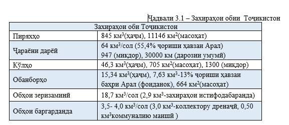 3.2. Танзими қонунгузории истифодабарӣ ва ҳифзи захираҳои обӣ